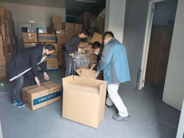 (圖為我司工作人員連夜為薊州區(qū)包裝口罩,并于凌晨三點(diǎn)送到薊州區(qū)區(qū)政府)